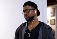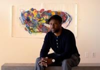 Askia Bilal works on a piece using pastels Feb. at Orr Street Studios in Columbia. "I'm trying to make a three-dimensional illusion of space, like a push between flat surface and depth," Bilal said.