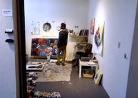 Askia Bilal's art studio stands cluttered with his art and tools Feb. 4 at Orr Street Studios in Columbia. "As an artist, it's an opportunity to have a space to work," Bilal said about his residency program. "Like before this, I worked at home in my garage. To have an actual environment for the way that I work is really nice; it gives me the motivation to work consistently."
