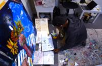 Askia Bilal creates a portrait Feb. 4 at Orr Street Studios in Columbia. Bilal has been interested in art since he was a child growing up in New York. He uses his art to make sense of the world.